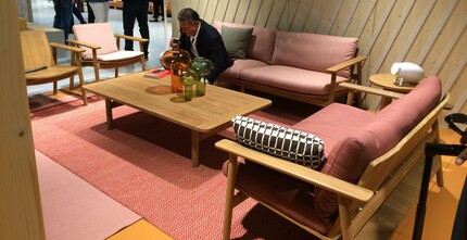 Modulare Polstermöbel in den Farben Petrol, Rot, Blau und Grün sind im Kommen. Zum Teil auch in Kombination mit sichtbaren Holzgestellen. Allgemein boomen Neuinterpretationen von Klassikern: Sofas werden wieder kleiner, wie in den späten Vierzigern und Fünfzigern. Manchmal sogar mit Bezügen aus Samt oder Velour.