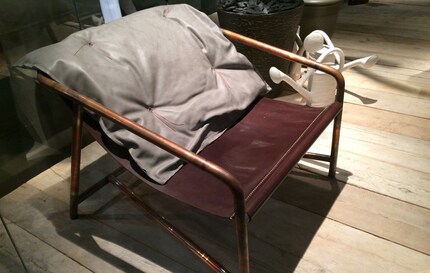 Sitz- und Liegemöbel werden aus Vintage-Leder, Regale und Leuchten aus feuerverzinkten Sanitär-Rohren gefertigt: Der Materialmix besitzt einen rohen Charakter. Anhängern des Industrial-Wohnstils dürften diese Objekte wohl gefallen.
