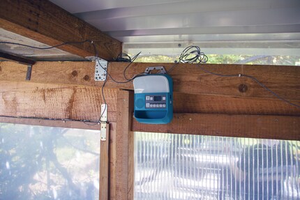 Um den Kontrollkasten zu befestigen, werden ebenfalls nur zwei Nägel benötigt. Daran kannst du die Einheit aufhängen und bei Bedarf schnell demontieren. Hier solltest du darauf achten, dass der Kontrollkasten vom Regen geschützt ist. Die Steckverbindung zum Solarpanel sieht meiner fachkundigen Meinung nach nicht wirklich wasserfest aus.