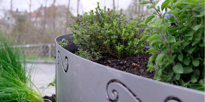Cortenstahl ist witterungsbeständig und schreckt Schnecken ab. Perfekte Eigenschaften für den Garten. Als Kräuterschnecke wird der rostige Baustoff besonders schön in Szene gesetzt.
