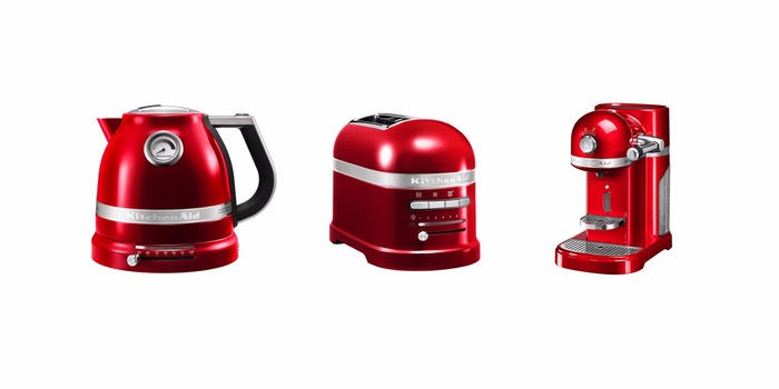 Diese stromlinienförmige, knallrote KitchenAid-Serie ist eine richtige Augenweide. Eine Serie in die man sich, nur schon der Farbe wegen, schnell mal verlieben kann. Eigentlich ganz passend, denn Liebe geht bekanntlich durch den Magen. Wieso also nicht schon beim Frühstück?