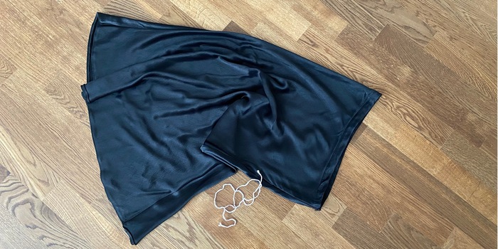 Meine Schrankleiche ist dieses Mal ein Rock mit Gummiband. Das gute Stück habe ich vor zwei Jahren online bestellt und noch nie getragen. Da mir der Rock zu gross ist und ich ihn nicht fristgerecht retourniert habe, liegt er unangetastet in meinem Schrank. Da er mir aber gefällt und ich nicht gut nähen kann, probiere ich einen Fashion Hack aus. Dafür benötige ich nur ein Elastikband, ein schmales Satin-Geschenkband oder eine Haushaltsschnur. Ich entscheide mich – mangels Alternativen – für Letzteres.