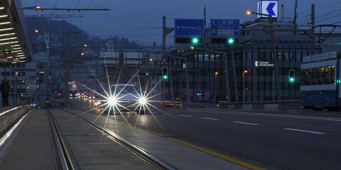 Bei Scheinwerfern klappts in der Regel am besten, wenn sie direkt auf die Kamera gerichtet sind.
