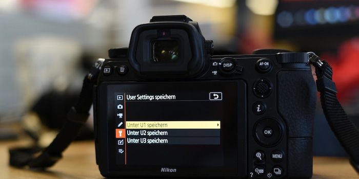 Im Kameramenü gibt es einen Eintrag, um die aktuellen Kameraeinstellungen zu speichern. Dort wählst du den Speicherplatz (z.B. U2), falls es mehrere gibt. Ab sofort werden diese Einstellungen aktiviert, wenn du das Rad auf U2 drehst.