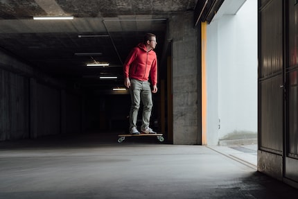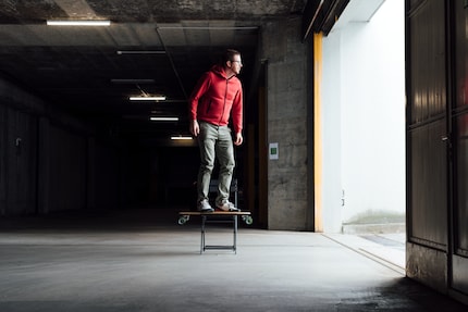 Auch das führt zunächst nicht weiter. Nach einer längeren kreativen Blockade fällt Tom das Hoverboard aus «Zurück in die Zukunft» ein. Er stellt sein Skateboard auf einen Stuhl, den er in Photoshop entfernt. Das Hintergrundbild nimmt er natürlich ohne Stuhl auf.