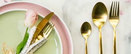Glamouröser Touch: Das goldene Besteck von Sola macht den Look weniger kindlich.Wie man seinen Frühlingstisch sonst noch gestalten kann: