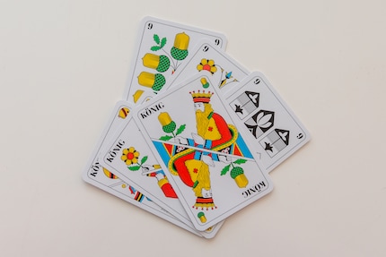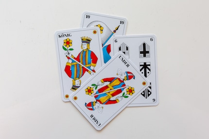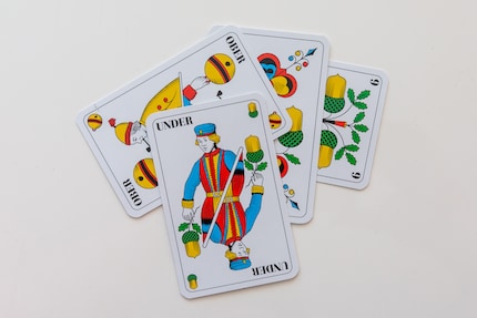 Wie viele Karten muss ich beim «Hose abe» nochmals austeilen? Muss ich beim «Schällejass» die Farbe angeben? In diesem Beitrag findest du alle Regeln zu fünf schnellen Spielen mit Jasskarten.