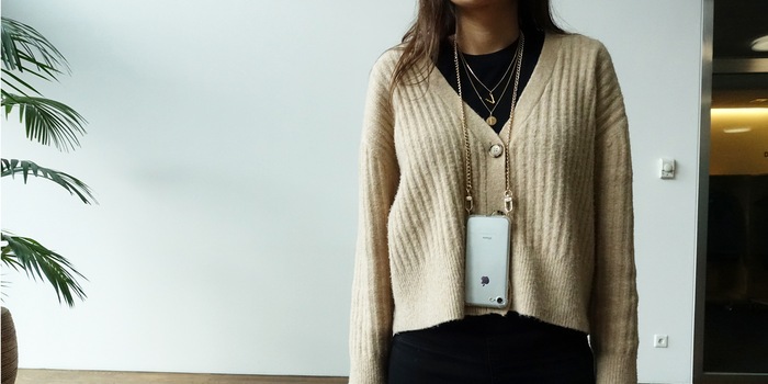 Ein weiterer Trend, der es langsam aber sicher auch über den grossen Teich geschafft hat, sind Handyketten. Das sind Plastikhüllen, an denen eine Kordel befestigt ist. Damit hängst du dir dein Handy um den Hals. Zugegeben, schön ist anders, aber praktisch sind sie: So trägst du dein Smartphone stets bei dir und hast trotzdem beide Hände frei. Wer die schicke Variante bevorzugt, greift zu einem Modell mit einer silbernen oder goldenen Gliederkette.