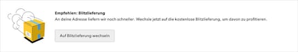 Für Blitzlieferungen verfügbar sind alle Produkte, die Digitec Galaxus selbst in der Schweiz an Lager hat, bis zu einem Maximalgewicht von 30 Kg und einer Grösse von 60x60x100 Zentimetern. Sofern sämtliche Produkte einer Bestellung per Blitzlieferung versendet werden können, wird diese Option Kundinnen und Kunden beim Checkout empfohlen.