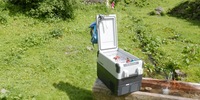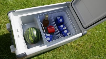 Eine Thermoelektrikkühlbox hält den Inhalt kalt, statt ihn aktiv zu kühlen. Daher ist es erforderlich, die Inhalte vor der Reise zu kühlen. Diese Lösung empfiehlt sich nicht für Reisen, die länger als ein bis zwei Tage dauern.