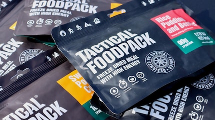 Beim Gefriertrocknen werden die Mahlzeiten schockgefroren. Anschliessend wird ihnen im Vakuum Wasser entzogen. Durch diese Methode behalten die Gerichte ihren Geschmack und ihre Textur besser. Zudem sind sie schneller und mit weniger Energie rehydrierbar. Deshalb reicht bei den Mahlzeiten von Tactical Foodpack warmes bis heisses Wasser (es muss nicht kochen) und fünf bis acht Minuten Ziehzeit, bis das Essen fertig ist.