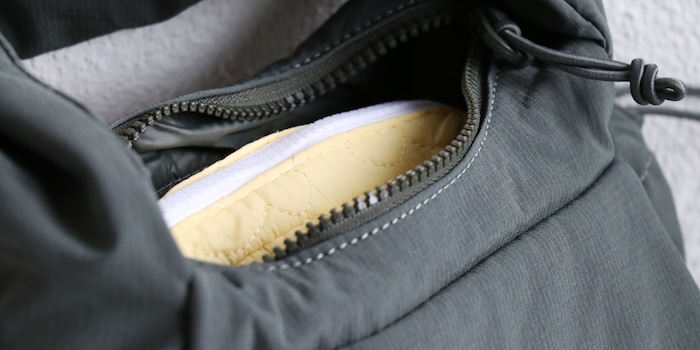 Tampons in verschiedenen Grössen und eine Binde sind stets mit von der Partie. Selbst wenn ich gerade keine benötige, irgendjemand ist immer froh drum, wenn ich welche zur Hand habe. Neuerdings habe ich mein persönliches Sortiment um einen Hygienebeutel ergänzt. Den kann ich zum Beispiel als mobilen Abfallsack nutzen oder um etwas auslaufsicher in der Tasche zu verstauen.