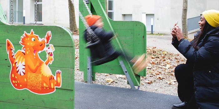 Seit vergangenem Wochenende kleben die Sticker mit QR-Code auf Rutschen, Schaukeln und Klettergerüsten von zwei Schweizer Spielplätzen, dem Zürcher Heuried und dem Berner Längmuur. Die Stiftung Kinderschutz Schweiz steckt dahinter, sie will damit Eltern fürs Thema «Sharenting» sensibilisieren: Ein Kofferwort aus «Parenting» und «Sharing», welches das Verbreiten von Kinderbildern im Internet meint.