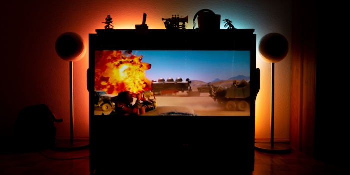 Ich habe kürzlich einen Schrein für meinen Fernseher gezimmert, um drei Hue Play Lightbars zu integrieren, die über die Sync Box angesteuert werden und die Farben des TV-Bildes aufgreifen. Mit dem Gradient Lightstrip gibt es nun das fehlende Hue-Puzzleteil, wenn du auf «richtiges» Ambilight am Fernseher stehst. Er ist die logische Ergänzung des Angebots und für TVs ab 55 Zoll erhältlich.