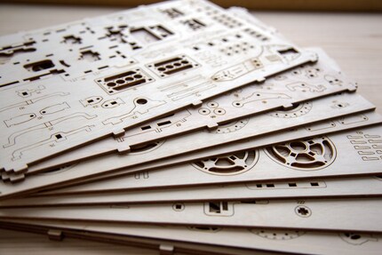 Der «WoodenCity Jeep 4x4» besitzt 569 Einzelteile aus Birkensperrholz und sollte laut Hersteller in ungefähr 12 Stunden gebaut sein. Seine Einzelteile sind auf mehreren Holzbögen vorgelasert und können von Hand oder mit einem spitzen Hilfsmittel herausgetrennt werden. Was sich einfach anhört, ist schwieriger als gedacht. Denn die Dinger gehen schnell kaputt. Sehr schnell sogar.