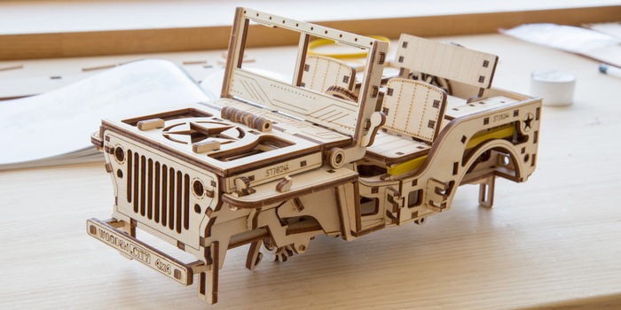 Der «Allrad-Jeep» ist das teilemässig grösste Set des Modellbauherstellers «WoodenCity». Mit dem Bau wollte ich meine Fingerfertigkeiten unter Beweis stellen, bin jedoch kläglich gescheitert.