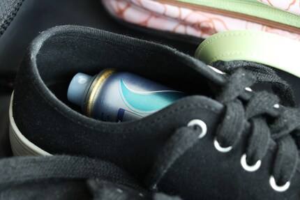 Das Necessaire selbst platziere ich im Koffer zuunterst. So kommt das grösste Gewicht unten direkt über den Rädchen zu liegen, wodurch meine Kleider nicht platt gedrückt werden. Produkte wie Haarsprays oder Deos verstaue ich dank dem Tipp von Vanessa Kim in meinen Schuhen, um den Platz in meinem Koffer optimal zu nutzen.