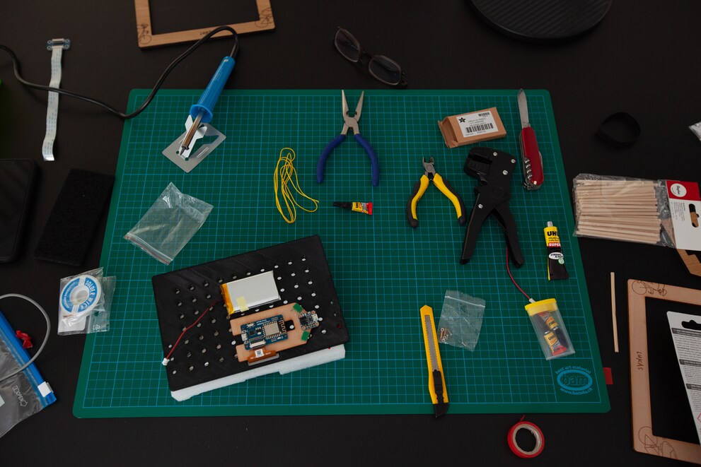 Für den Zusammenbau lege ich das Display ins Gehäuse und verklebe es mit dem Holzrahmen. Den Controller klebe ich ebenfalls auf dem Sockel fest. Den USB-Charger und die Schalter verlöte ich fest mit dem Controller. Der Zusammenbau eines einzelnen Displays dauert etwa eine Stunde.