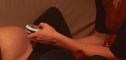 Fabienne liegt gemütlich auf ihrem Sofa und ich taste zu Beginn ihren Bauch ab. Anschliessend frage ich sie nach den Bewegungen des Kindes und überprüfe die Herztöne, die beide mithören können. Peter schaut mich fragend an: «Wahnsinn, wie schnell das Herz schlägt! Das klingt ja wie ein galoppierendes Pferd. Muss das so schnell sein?». Ich erkläre Peter, dass das Herz von ihrem Baby 110–160 mal pro Minute schlägt. Ich messe noch Fabiennes Blutdruck und kontrolliere ihren Urin. Ich bin mit allem sehr zufrieden, was Fabienne zu beruhigen scheint.