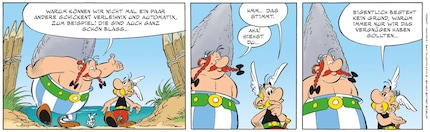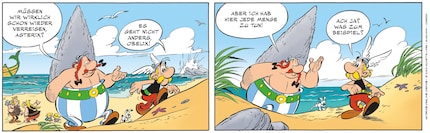 Bis dahin ist das neue Asterix-Abenteuer aus der Feder von Fabcaro (Text) und Didier Conrad (Zeichnungen) eines, das beim Lesen sehr viel Spass macht. Es ist eine Geschichte, die gut in die Reihe früherer Reise-Abenteuer der Gallier passt, sei es der Besuch in der Schweiz, durch Italien oder bei den Belgiern.