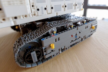Was mir beim Zusammenbau des Liebherrs aufgefallen ist: seine symmetrische Bauform. Egal ob beim Kettenfahrwerk, beim Oberwagen oder beim Ausleger: Alles ist gespiegelt. Somit baust du beim Bagger fast alles zwei Mal. Für mich ein kleiner Dämpfer, da der Bau repetitiv ist.