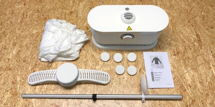 Beim CleanMaxx ist alles im Lieferumfang dabei, was du fürs Bügeln deiner Hemden und Blusen brauchst. Die Haupteinheit, der Bügelaufsatz für die Schulterpartie inklusive Verbindungsstab und Tropfschutz sowie der Nylon-Ballon. Über diesen stülpst du dein Hemd. Hinzu kommen noch fünf Gewichte für die Kleiderstraffung sowie eine kurze Bedienungsanleitung. Das war's dann auch schon. Das Ganze ist sehr simpel gehalten, was mir schon mal gut gefällt. Ob das Ding mit diesem Zubehör seinen Dienst tut, werde ich bald erfahren.
