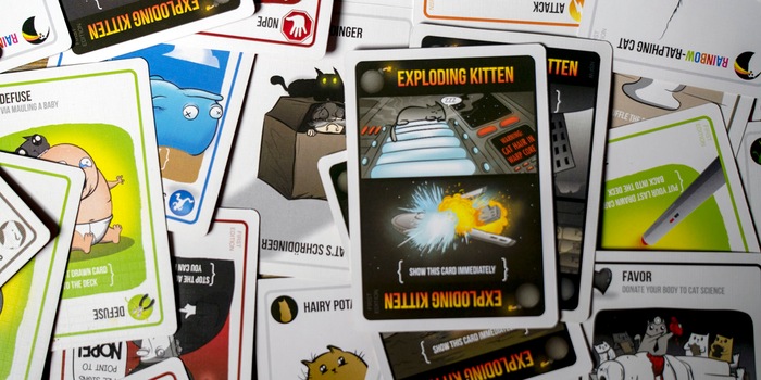 Ein Kartenspiel der etwas anderen Art: Bei «Exploding Kittens» geht es darum, mit Laserstrahlen explodierende Katzen abzuwehren und als letzter Spieler noch am Leben zu sein.