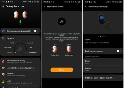 Vielleicht ist die Steuerung so nervös, weil mehrere Steuerbefehle in der App auf die Buds gelegt werden können. Du kannst zum Beispiel einstellen, dass du die Lautstärke an den Buds selbst regeln kannst. Dazu musst du deinen Finger lange an den Bud halten. Machst du das aber nicht genau so lange, wie Samsung das will, ändert sich nicht die Lautstärke, sondern die Musik hält einfach an.