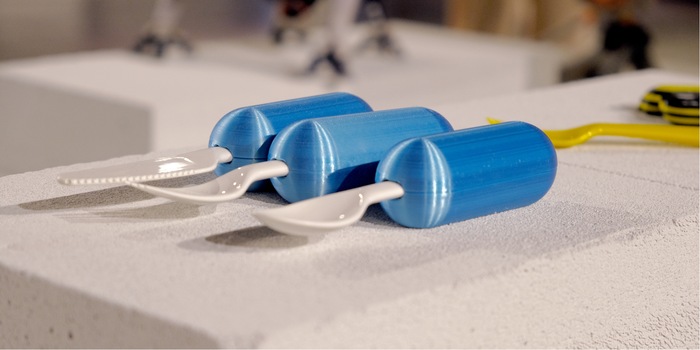 3D-Druckerei ist nichts Besonderes mehr. Damit Lücken zu stopfen hingegen schon. Karolina Nestoruk und Adam Biegała haben mithilfe der Technologie ein Besteck für autistische Kinder entworfen. Das Set kommt bunter und gröber als herkömmliches Tafelsilber daher. Löffel, Gabel und Messer bestehen jeweils aus zwei Teilen, die durch versteckte Magnete miteinander verbunden sind. Ihre speziellen Aufsätze können nach «dem Prinzip des Neoprenanzugs» – wie es das Duo nennt – ausgewechselt werden und den Umgang mit Besteck auf spielerische Art beibringen.