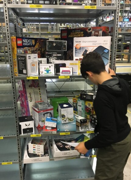 Zum Zmittag gab es Pizza, so wurden alle wieder gestärkt und die ersten Beinschmerzen vom langen Stehen gingen schnell wieder vergessen. Am Nachmittag durften die Kinder beweisen, was sie am Morgen gelernt hatten. In einem Postenlauf durften alle einen Zettel mit einer Nummer darauf ziehen. Nacheinander wurden die kleinen Gäste auf den Postenlauf geschickt. Die Kinder erhielten eine Kommissionierliste, mit der sie durchs Lager zogen. Darauf waren vordefinierte Lagerplätze vermerkt. Auf dem ersten Platz war eine Adressetikette, auf dem zweiten ein digitec-Prospekt und auf dem dritten ein „Päklikarton“ mit unserem Logo. Ganz am Ende kamen unsere Besucher dann zu einem Gestell, in dem viele abgeschriebene, aber dennoch tolle Produkte platziert worden waren. Dort durften sie sich ein Produkt ihrer Wahl aussuchen und dieses anschliessend mit den restlichen gesammelten Utensilien verpacken. Das Päckli durften die Kinder am Ende des Tages natürlich mit nach Hause nehmen.