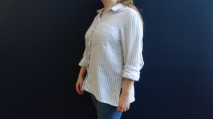 Shirts und Pullover strecken den Hals, wenn sie einen V-Ausschnitt haben. Rollis hingegen stauchen, da sie den Hals verkürzen. Wenn du dennoch nicht darauf verzichten magst, wähl ein Modell mit einem kurzen oder einem locker sitzenden Kragen. Achte ausserdem darauf, dass deine Oberteile nicht schlabbrig sitzen, sondern die Silhouette betonen (siehe Punkt 1). Keine Angst: Tops & Co. müssen nicht hauteng sein, aber figurumspielend.