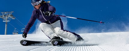 Der Cloud Nine von Atomic ist einer der weltweit am meisten verkauften Damen-Pistenski: Er erleichtert die Schwungeinleitung und ermöglicht präzise, entspannt gedriftete Schwünge. Der GT 76 Ti von Nordica (Herren) hat eine extra breite Spitze, damit er auf der präparierten Piste wie auch im Tiefschnee unbeirrt laufen kann. Der M X-Drive 8.3 von Salomon (Herren) bietet aufgrund des verstärkten Carbon-Rahmens erhöhten Kantengriff.