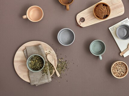 Holz-Accessoires harmonieren mit vielen Materialien wie Keramik oder Glas und lassen sich flexibel stylen. Bild: BloomingvilleZu allen Etageren // Tischaccessoires