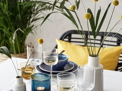 Ein Tisch-Setting kann auch ohne das Essen serviert wurde, bereits glänzen, wenn du bewusst mit einem einheitlichen Farbkonzept arbeitest. Bilder: By Lassen, NordalFür das Finish gehören neben allen Serviermöglichkeiten Dinge, die vor allem der Stimmung und Dekoration dienen dazu: Bewusst gewählte Blumen, frischer Basilikum und Kerzen spiegeln dein Motto und die Jahreszeit wieder.
