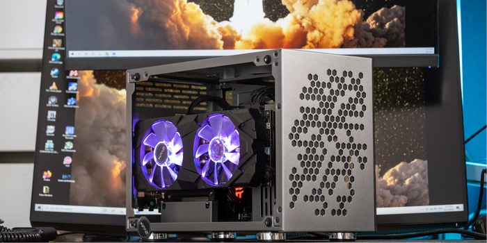 Ist die Grafikkarte weiter hinten, hat sie 2,5 Zentimeter zum Atmen – also das Fünffache an Platz. Dadurch wird auch das Glaspanel nicht mehr so heiss wie zuvor. Es ist zwar warm, aber verbrennen tue ich mich nicht mehr. Jedoch liegt die Grafikkarte so näher an der CPU. Deren Kühler darf jetzt maximal 5,3 Zentimeter hoch sein. Genug Platz für meinen Noctua NH-L9a oder den Kühlkörper einer AIO. Da ich zurzeit keine AIO im Homeoffice zum Testen habe, kann ich nichts zur Kühlleistung mit einer solchen sagen. Am besten schaust du dir deshalb dieses Video an, in dem ein Youtuber eine AIO in dieses Gehäuse verbaut. Der verbaute Intel i7-10700K wurde so maximal 80 °Celsius heiss.