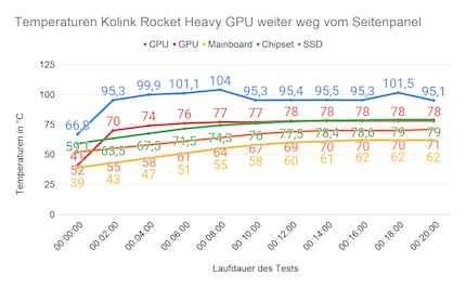 Die Temperaturen liegen im Rahmen von ähnlich grossen Gehäusen. Bei meinem Test des Kolink Rocket wurden alle Komponenten mit Ausnahme der Grafikkarte ähnlich heiss. Dort hatte ich aber auch eine RTX 2070 verbaut. Mit dem etwas grösseren Jonsbo V8 lagen leicht bessere Werte drin.