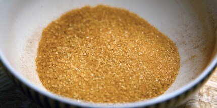 Gib zuerst die Zutaten Zimt, Vanillezucker und Rohrzucker in eine kleine Schüssel und verrühre sie.
