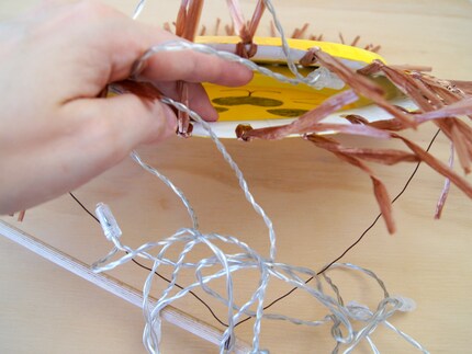 - Damit die Laterne auch schön leuchtet, legst du zum Schluss die batteriebetriebene Lichterkette hinein.
