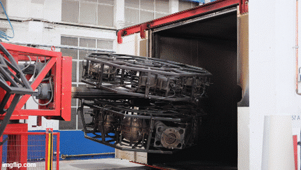 Herkömmliche Kunststofflampen werden in einem Spritzgussverfahren produziert. Dabei wird der Kunststoff mit Druck in alle Ecken einer Form gedrückt. Lampenschirme von 8 Seasons Design entstehen hingegen im Rotationsgussverfahren, das nur mit der Fliehkraft arbeitet und viele Vorteile hat. Darunter die Möglichkeit, komplexe Hohlkörper in einem Stück herzustellen. Weil sich die Maschine mit einer bestimmten Geschwindigkeit und bei einer bestimmten Temperatur dreht, lagert sich der Kunststoff in der zweiteiligen Form gleichmässig ab, so ist die Schichtdicke überall gleich. «Zum Vergleich wird in einem Blasformverfahren ein Tropfen von der Mitte aus in alle Ecken verteilt», erklärt Tim. «Das würde bei einem Stern bedeuten, dass die Form an den Rändern immer dünner wird.»