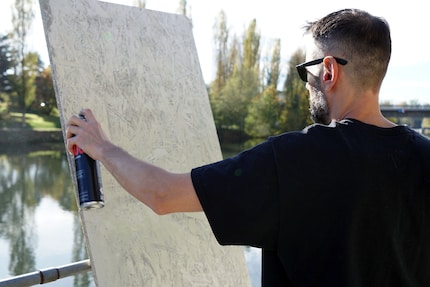 «Holz ist ein ganz eigenes Material», sagt der gebürtige Spanier in gebrochenem Deutsch. Da es lebe und Poren habe, müsse es ganz sorgfältig behandelt werden. «Es gibt Hölzer, die saugen einfach alle Farbe auf und am Ende ist dein Werk dann verwaschen und lahm», sagt er. Ein Sprayer muss sich, anders als bei einer Betonwand, voll auf die Farben in seiner Hand verlassen können. Die Balance zwischen Lack und Pigment sei hier entscheidend, sagt Mazo.