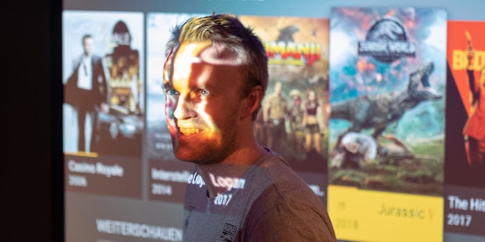 «Dann gibt’s noch jene Ideen, die einem erst in den Sinn kommen, wenn man schon mitten im Projekt ist. Ambilight zum Beispiel», sagt Martin. Er deutet auf die Leinwand: Ein LED-Band wirft zum Bild passende Lichter auf die dahinterliegende Gipswand. Die Lichtfarben passen sich den Farben an, die gerade auf der Leinwand zu sehen sind.