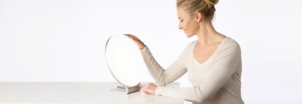 Wird eine Tageslicht-simulierende Lichttherapielampe möglichst früh nach dem morgendlichen Aufwachen angewandt, kann die Produktion von Melatonin tagsüber gehemmt werden. Dadurch kommt es zu einem positiven Stimmungsumschwung und du fühlst dich vitaler.