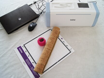 Für dieses DIY benötigst du natürlich einen Schneideplotter und die dazu passende Klebematte. Der trendige Korkstoff und einfarbiges Garn sind die verwendeten Materialien. Mit einem Laptop und der kostenlosen Software Brother Canvas Workspace kannst du zudem deine ganz eigenen Designs kreieren.