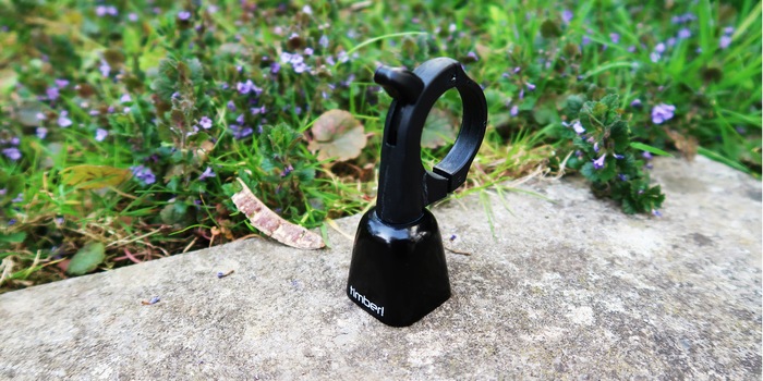 Timber ist die erste Fahrradklingel, die exklusiv fürs Mountainbiken konzipiert wurde. Sie passt aber auch an den Rennlenker meines Gravelbikes oder an Lenker von 22 bis 35 Millimeter. Das Design basiert auf dem einer Kuhglocke. Ein einfacher Ein/Aus-Hebel steuert den internen Klöppel. Ist der Hebel oben, ist die Glocke aus, schiebst du ihn nach unten, ist sie an. Die Bewegung des Rades aktiviert den Klang.