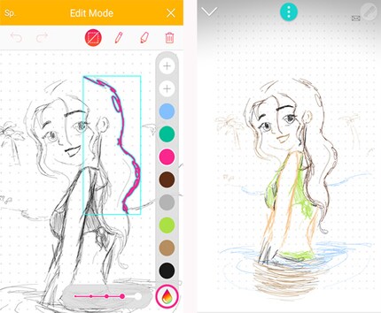 Das Arbeiten mit der M+ App bringt den Vorteil mit sich, dass du die Farbe und Dicke der nächsten Linie auswählen kannst. Wenn du aber lieber alles später editieren möchtest, siehst du sehr schön, wie jede Linie als Vektor verarbeitet wird und du kannst sie auch im Nachhinein nach Belieben verändern.