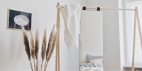 Als Kleiderständer und Spiegel gleichzeitig, lehnt sich «Carla» lässig gegen die Wand. Du kannst sie im Ankleidezimmer oder Eingang unterbringen und dich bezüglich ihres Standorts schnell einmal umentscheiden: Sie braucht nämlich keine Schrauben und bietet lieber Mützen, Schals und Jacken eine Ablagefläche.