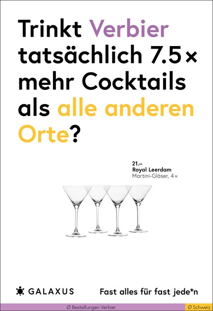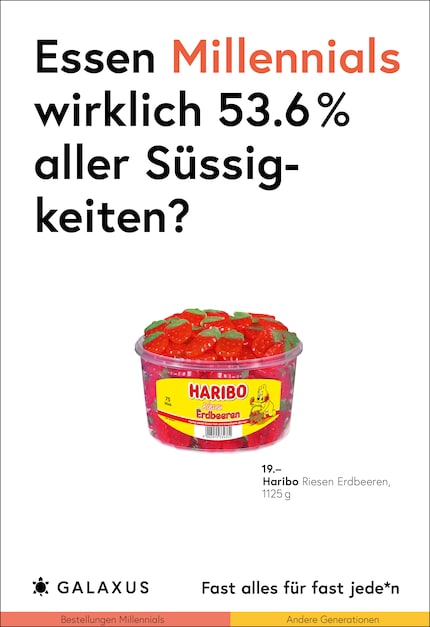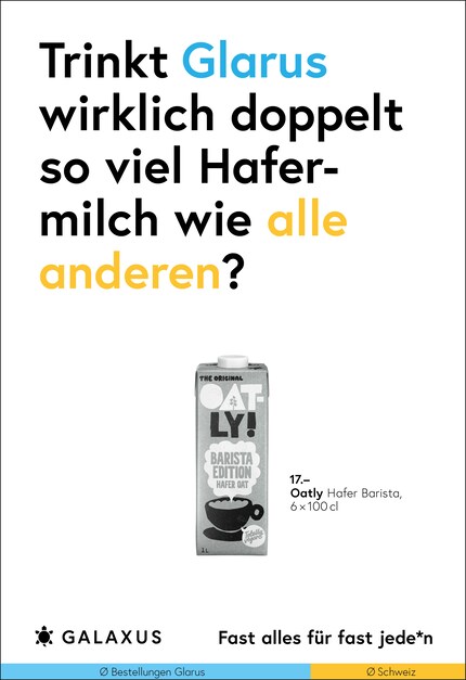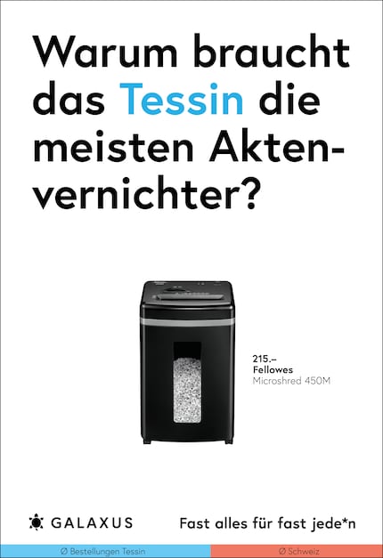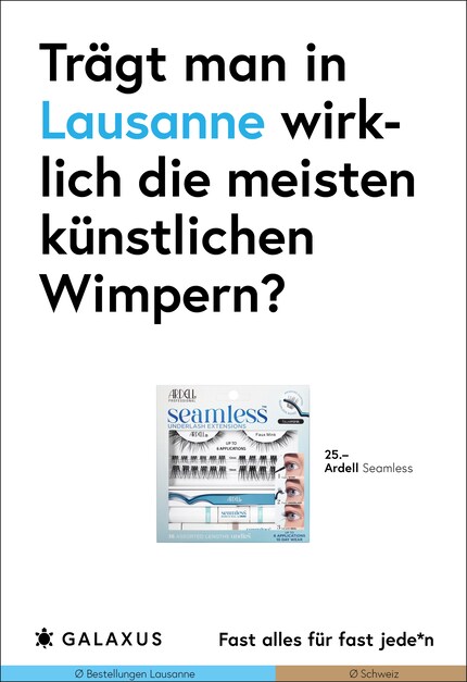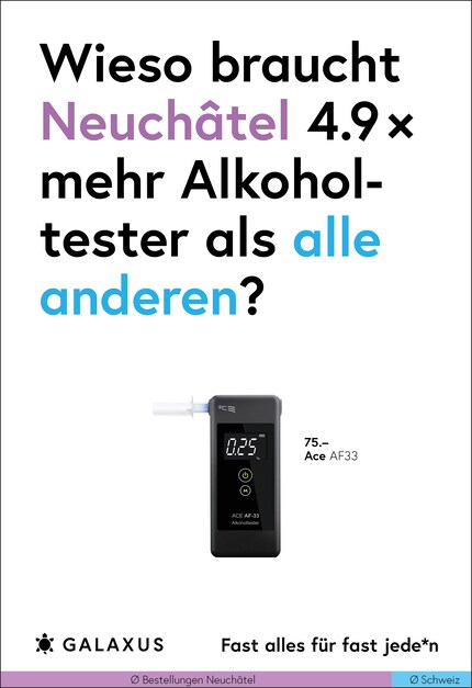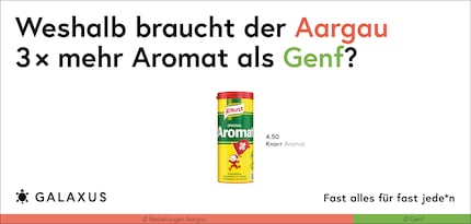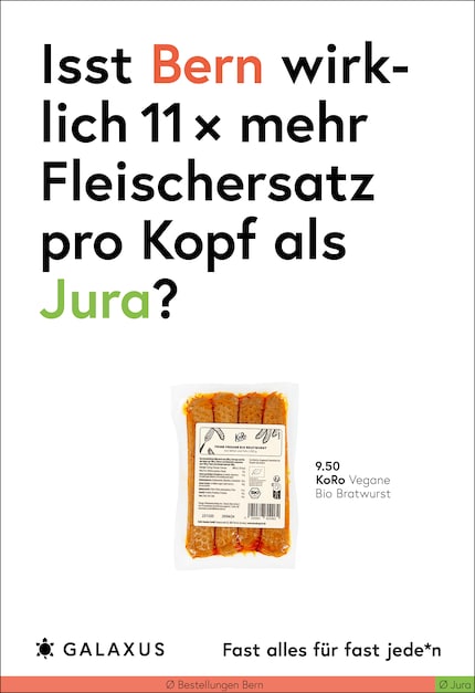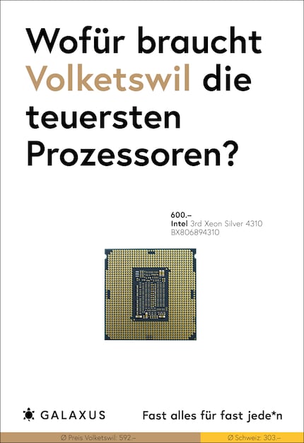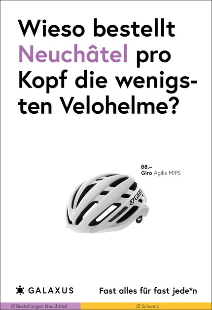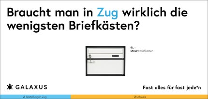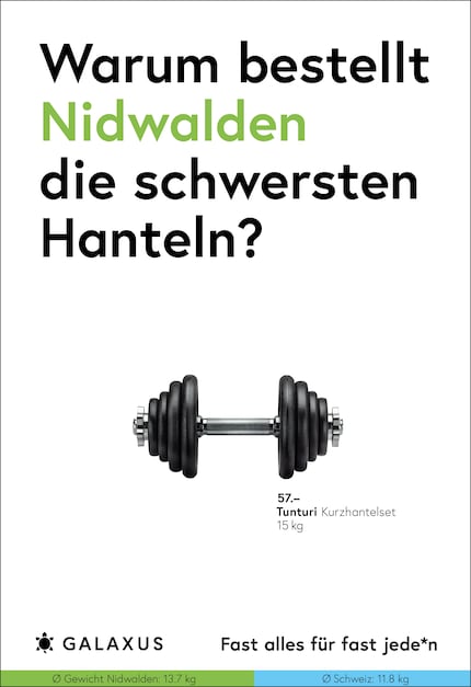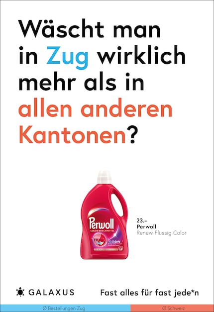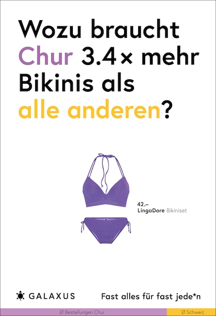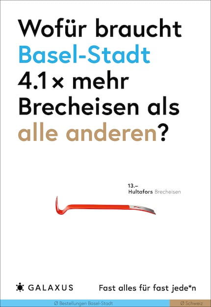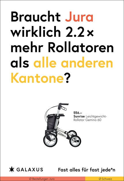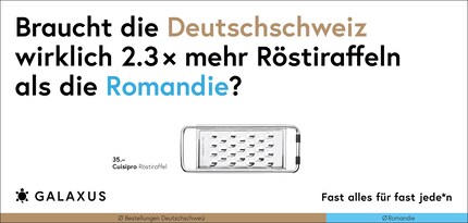 Die Schweiz ist ein kleines Land und fast die Hälfte der Nation kauft bei Galaxus. Da möchte man meinen, dass sich das Kaufverhalten nicht gross unterscheidet. Doch ein Blick in unsere Daten wirft Fragen auf. Diese stellen wir aktuell auf 45 Plakat-Sujets.