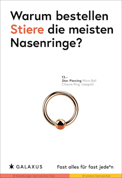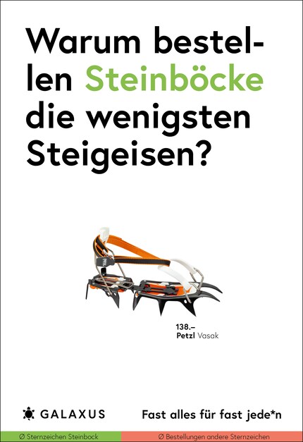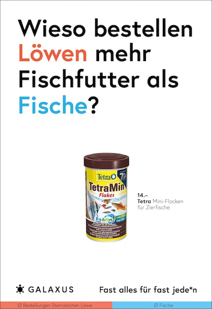 Diese Fragen stellen wir uns auch bei den Sujets der neuen Plakat-Kampagne, die auf Bestelldaten unserer Produkte beruht. Diese haben wir auf Basis unserer echten Kundendaten in Relation zu weiteren Faktoren wie Wohnort, Generation oder Sternzeichen gesetzt.