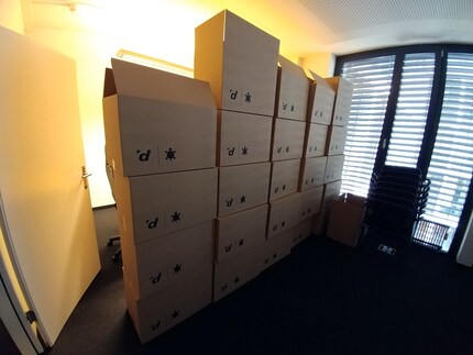Die verpackten LuftgitarrenDas sind die Kisten, in denen die Luftgitarren an unsere Kunden versendet werden. Die Frage ist nun: Was ist in den Kisten? Im Wesentlichen Luft und Gitarre.