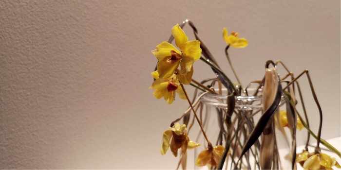 Es kommt häufig vor, dass Blumen auf Messeständen zu sehen sind. Deswegen stempel ich sie meistens als Deko ab. Dieses Mal liege ich mit dieser Annahme falsch. Die Blumensträusse von Catarina Tognon sind aus Glas. Die italienische Künstlerin kreiert Stilleben, die täuschend echt wirken. Die Reproduktionen von welken Schnittblumen sind so realistisch, weil sie trockene Zweige und sogar herunter gefallenen Blütenblätter abbilden. Die gelernte Biologin kennt unterschiedlichste Arten von Flora und Fauna und bildet sie absichtlich unvollkommen ab. Wie so oft liegt genau darin die Schönheit.